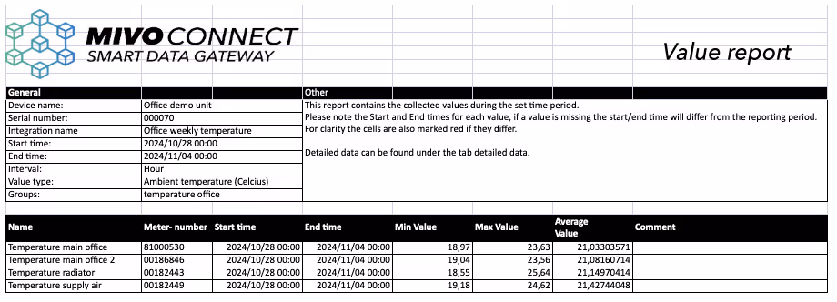 Get Excel summaries of electricity and water consumption by email directly from Mivo Connect. This smart solution is suitable for condominium associations and small real estate companies that want to be able to charge residents for actual consumption, without using a billing system for it. In the Excel file, you can fill in price information and get an automatic calculation for consumption charge.
