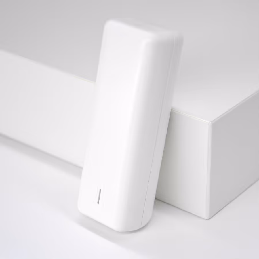 Enheten från Lansen är en plug-and-play-sensor för rumstemperatur och luftfuktighet. Stor omsorg har lagts på att utforma en stilren och estetiskt tilltalande enhet med hög säkerhet och prestanda. Designen möjliggör diskret integrering vid montering i hemmiljö. Enheten har en robust konstruktion med en innovativ optisk sabotagefunktion som larmar om enheten öppnas. En bit i statusmeddelandet sätts om sabotage upptäcks eller återställs. Batterinivån övervakas kontinuerligt och en varning för låg batterinivå skickas när batteriet börjar ta slut.